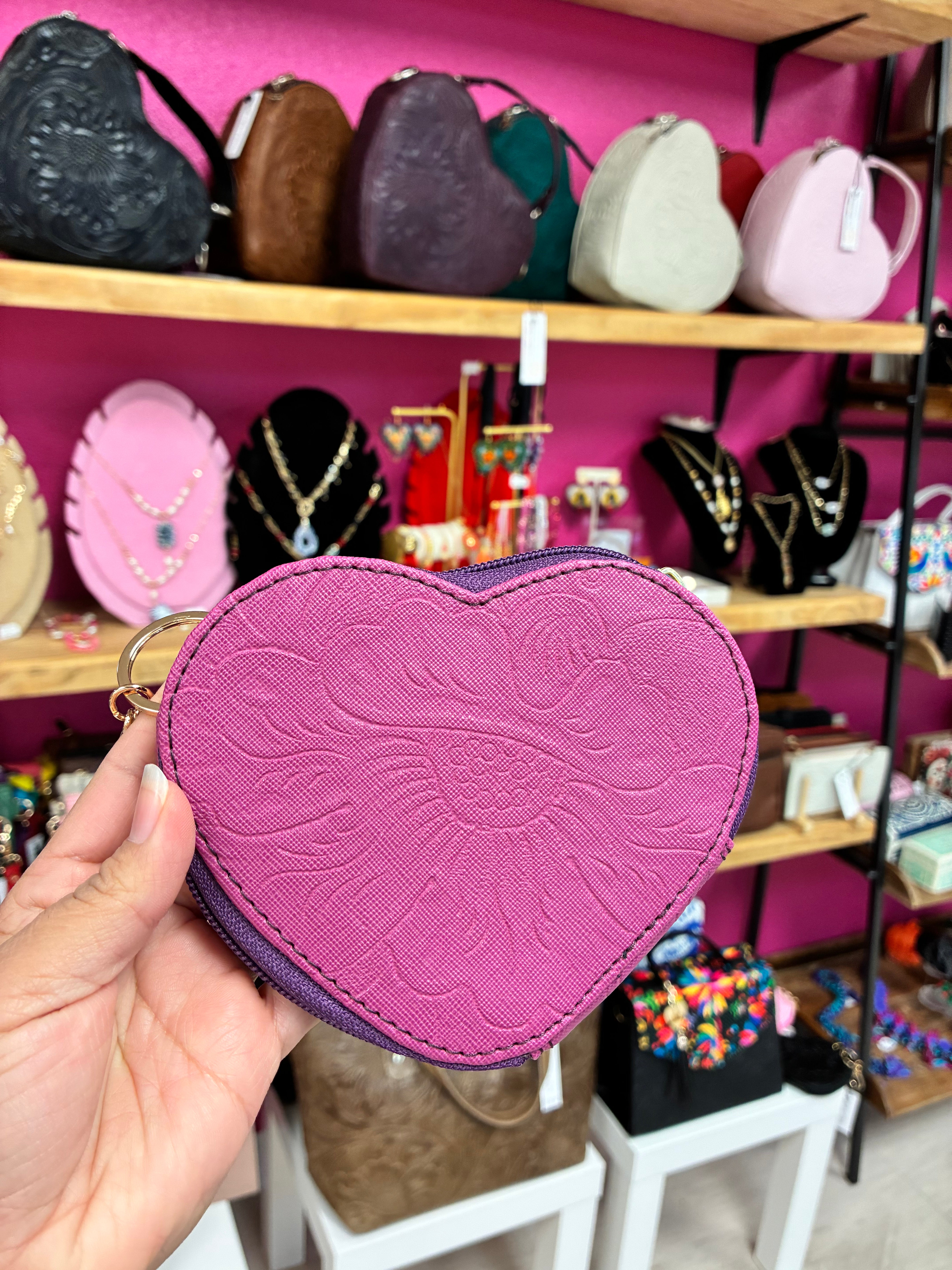 Piel Fina- Heart Shape Leather Coin Purse - Light Pink is backordered and will ship as soon as it is back in stock.