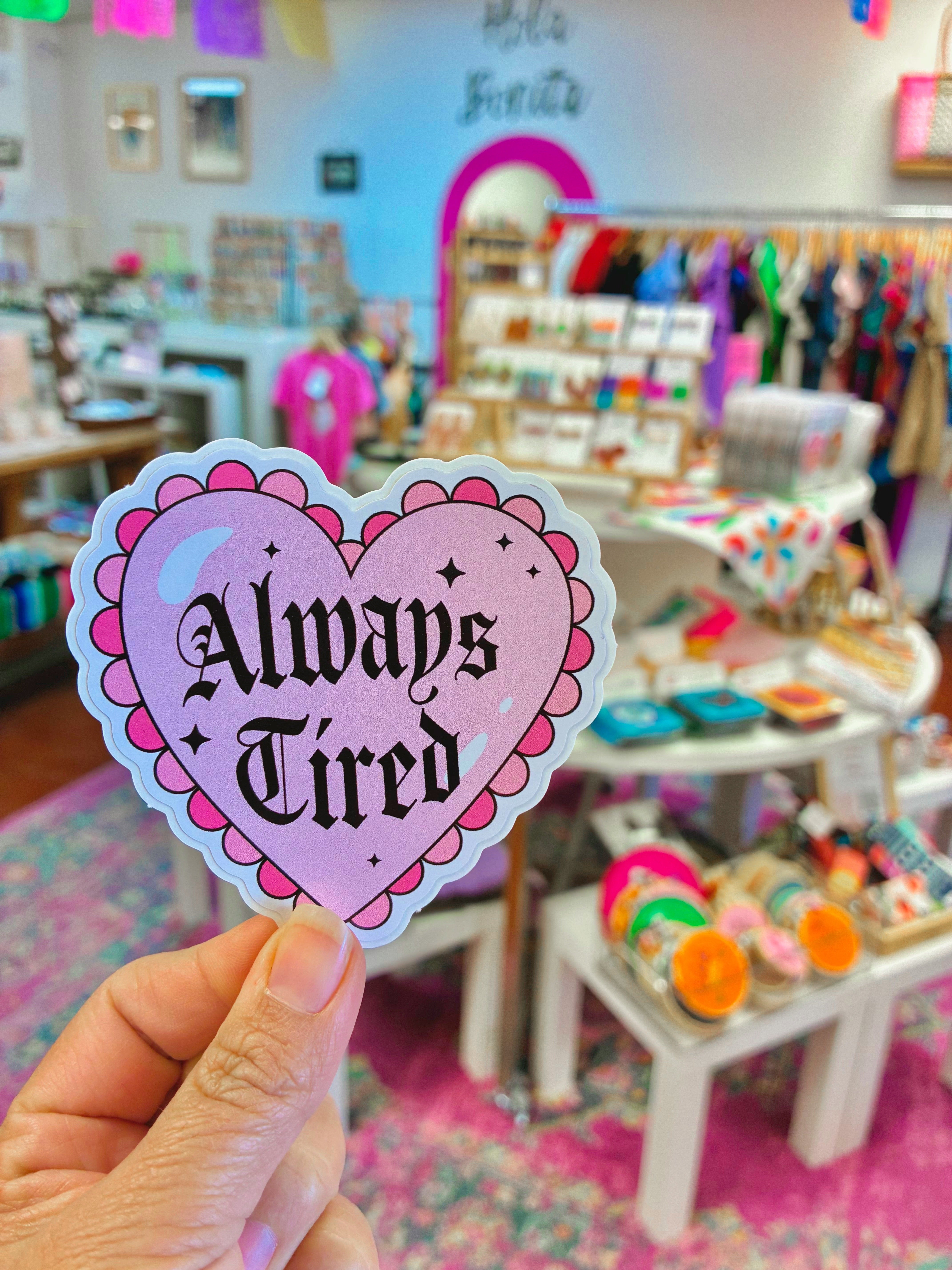 Always Tired Sticker is backordered and will ship as soon as it is back in stock.