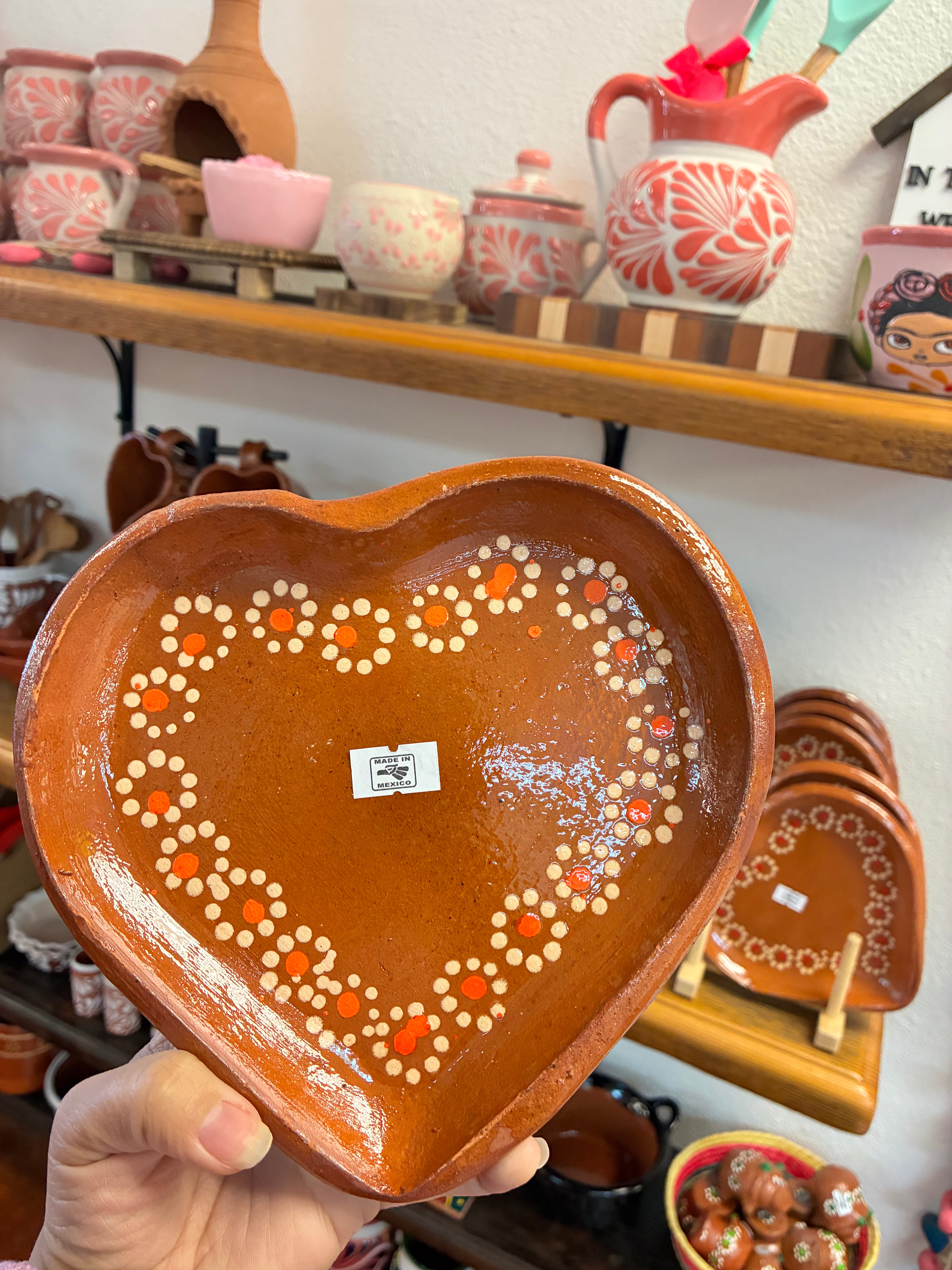 AR- Barro Corazon Plato - Orange flower is backordered and will ship as soon as it is back in stock.