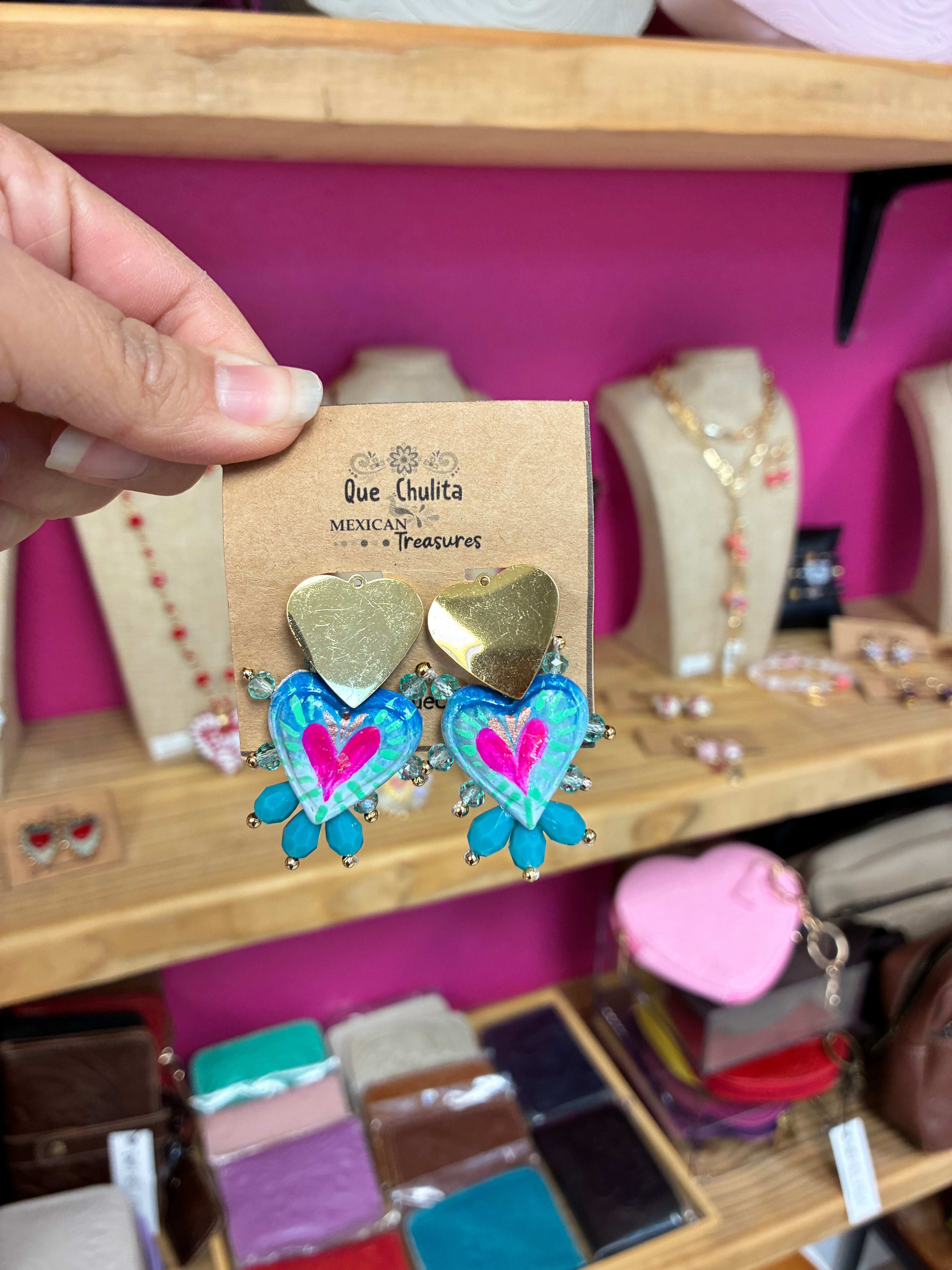 Que Chulita- Hand panted heart earrings is backordered and will ship as soon as it is back in stock.