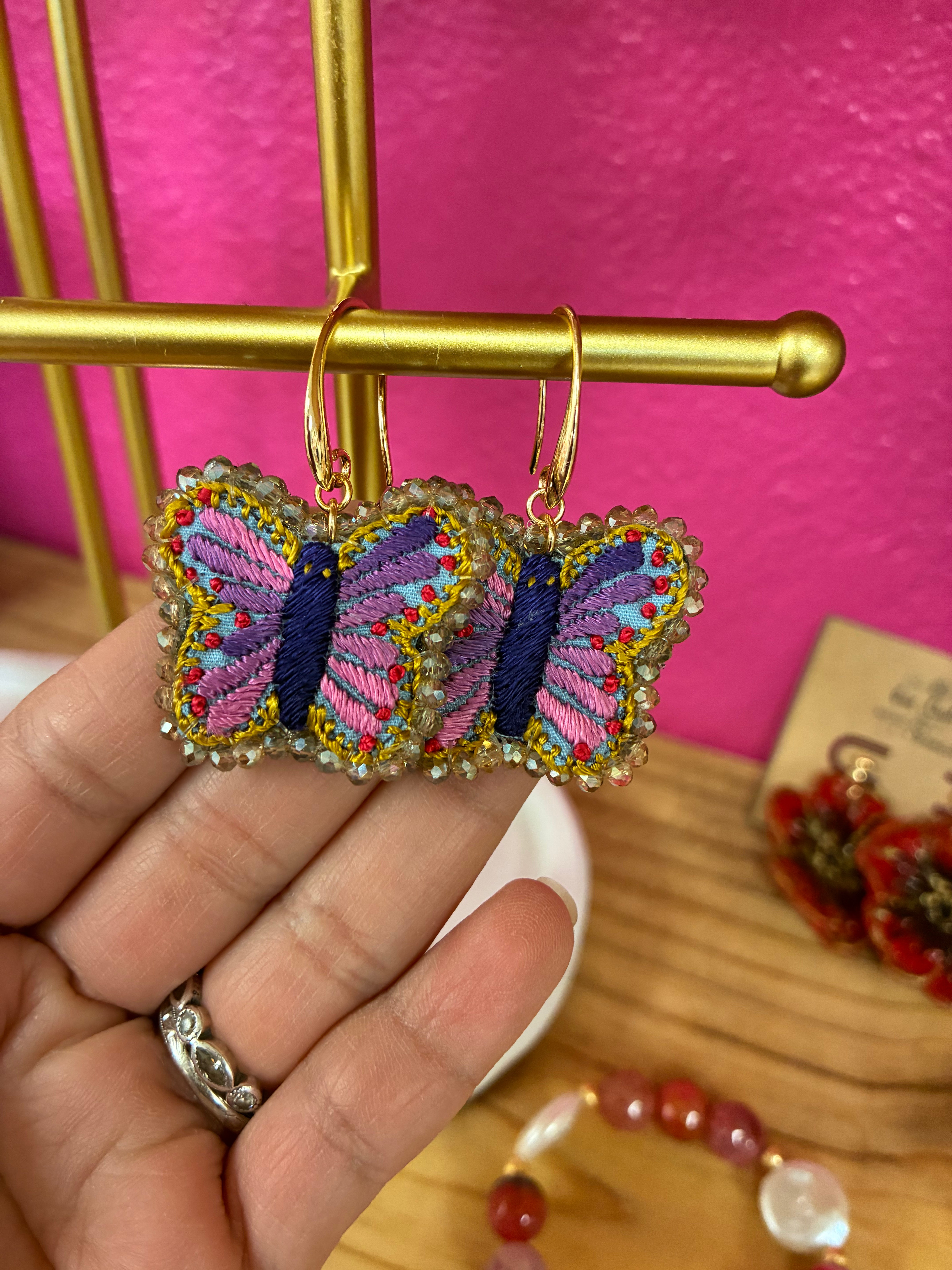 Que Chulita- Mariposa embroidered earrings is backordered and will ship as soon as it is back in stock.